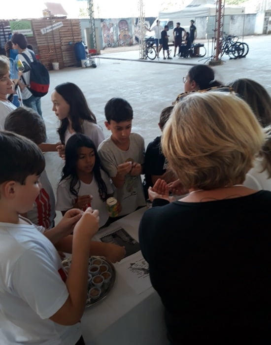 Dinâmica – Falar uma palavra em italiano para ganhar um biscoitinho e dentro havia uma frase em Italiano para leitura. Os alunos orientavam, liam e traduziam para quem não conseguia realizar a atividade: